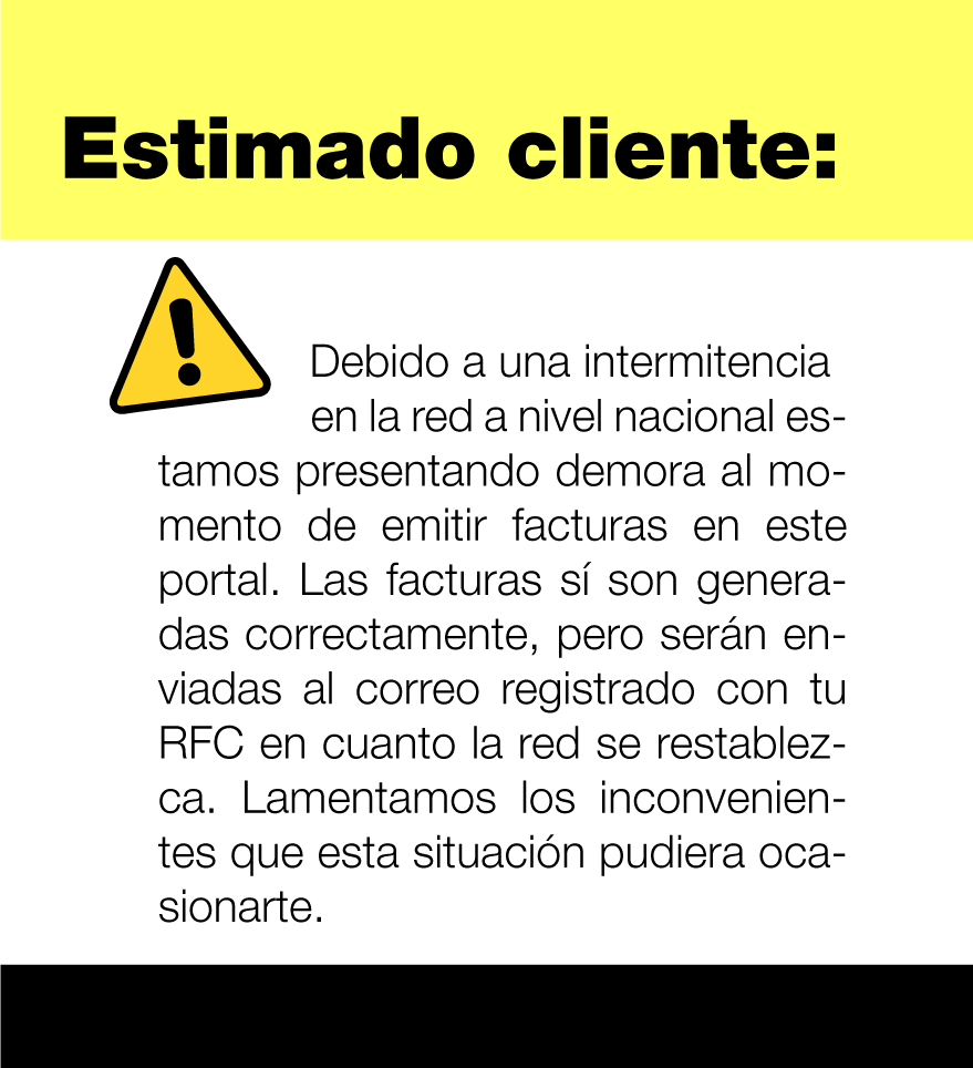 Este portal únicamente factura para nuestras estaciones en los Estados de Yucatán y Quintana Roo.